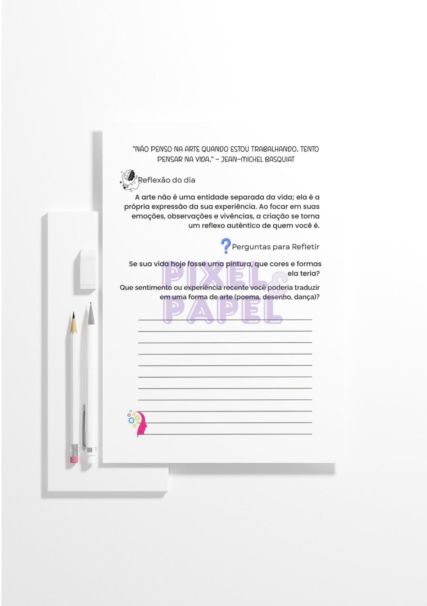 Pense nele não como um conjunto de folhas, mas como um espelho para sua alma artística, um lugar seguro para cultivar suas ideias, longe de qualquer julgamento.