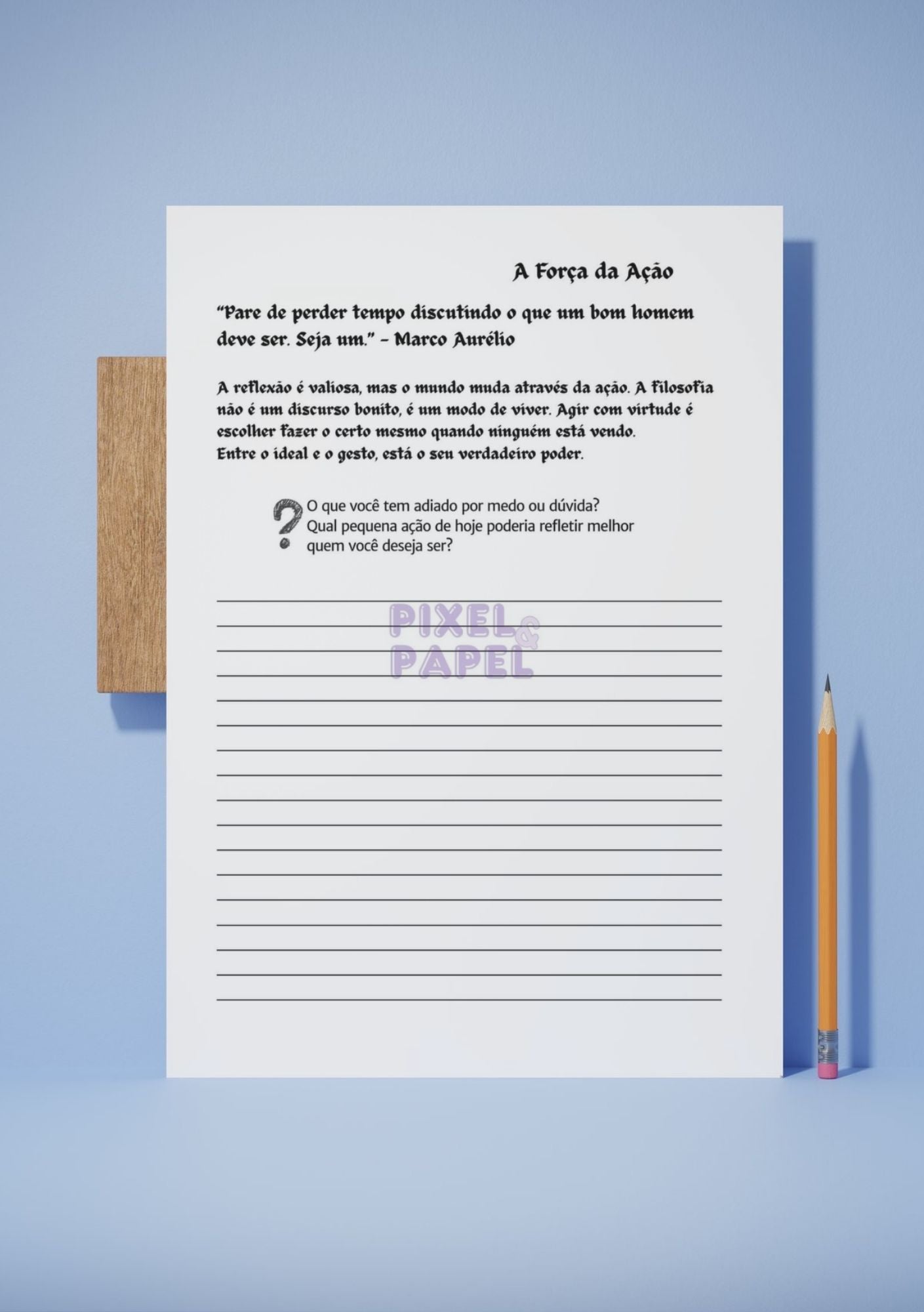 Existe um espaço onde a calma e a ação se encontram. Onde a sabedoria não é apenas lida, mas vivida. Bem-vindo ao Diário Entre o Ser e o Fazer, um convite para desacelerar, observar os próprios pensamentos e transformar filosofia em atitude.