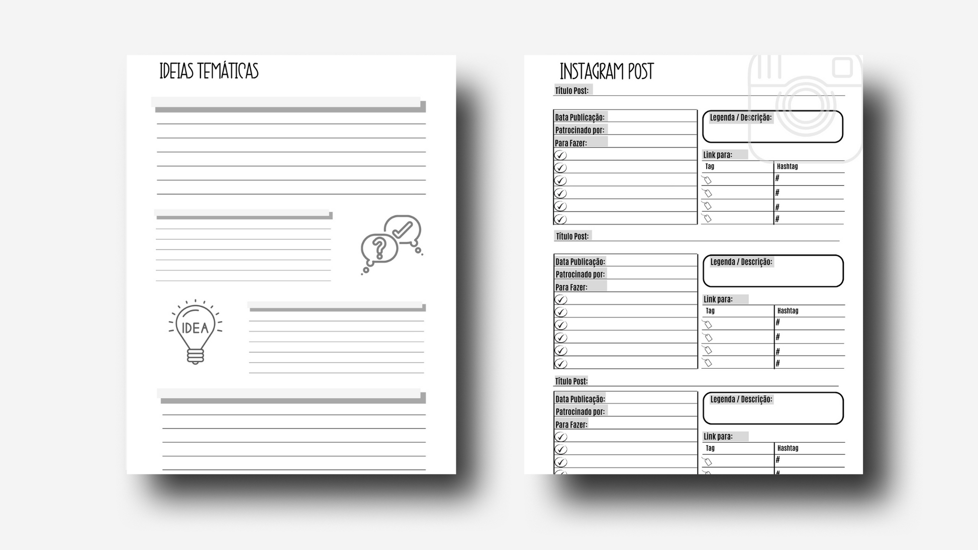Espaço para Criatividade: páginas específicas para anotar ideias temáticas e criar estratégias.